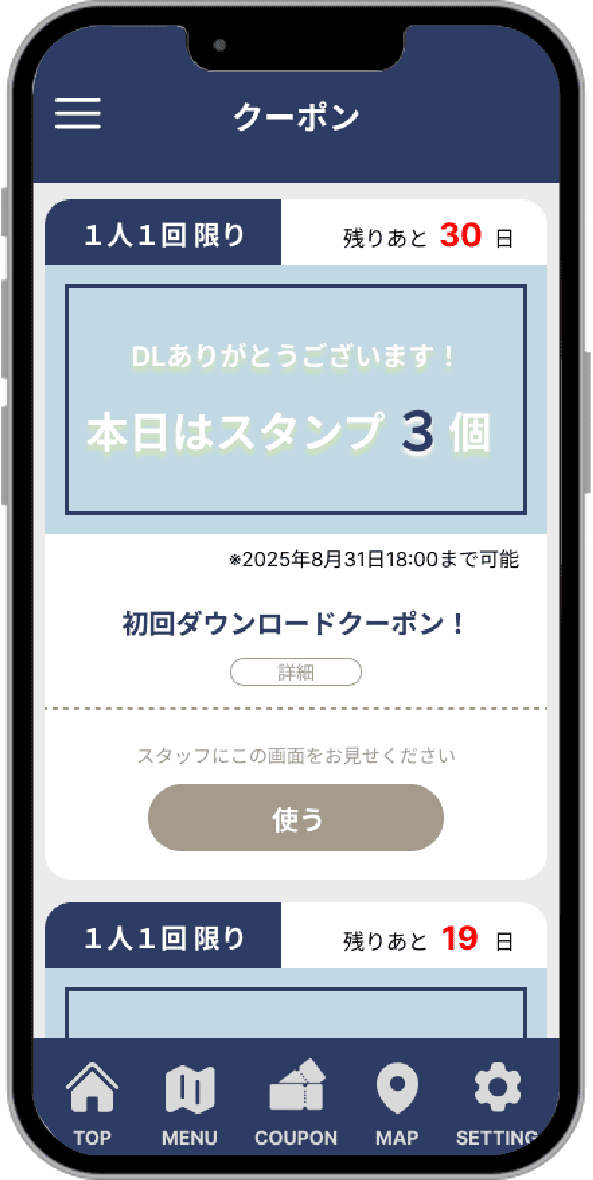 毎月お得なキャンペーンをやっていましたが、お客さまが来店された時に店頭でご案内することしかできませんでした。アプリの導入により、毎月1日にお得なキャンペーンの案内+クーポンを配信することで、お客さまのリピート率が向上し、売上が継続的に伸び続けています!