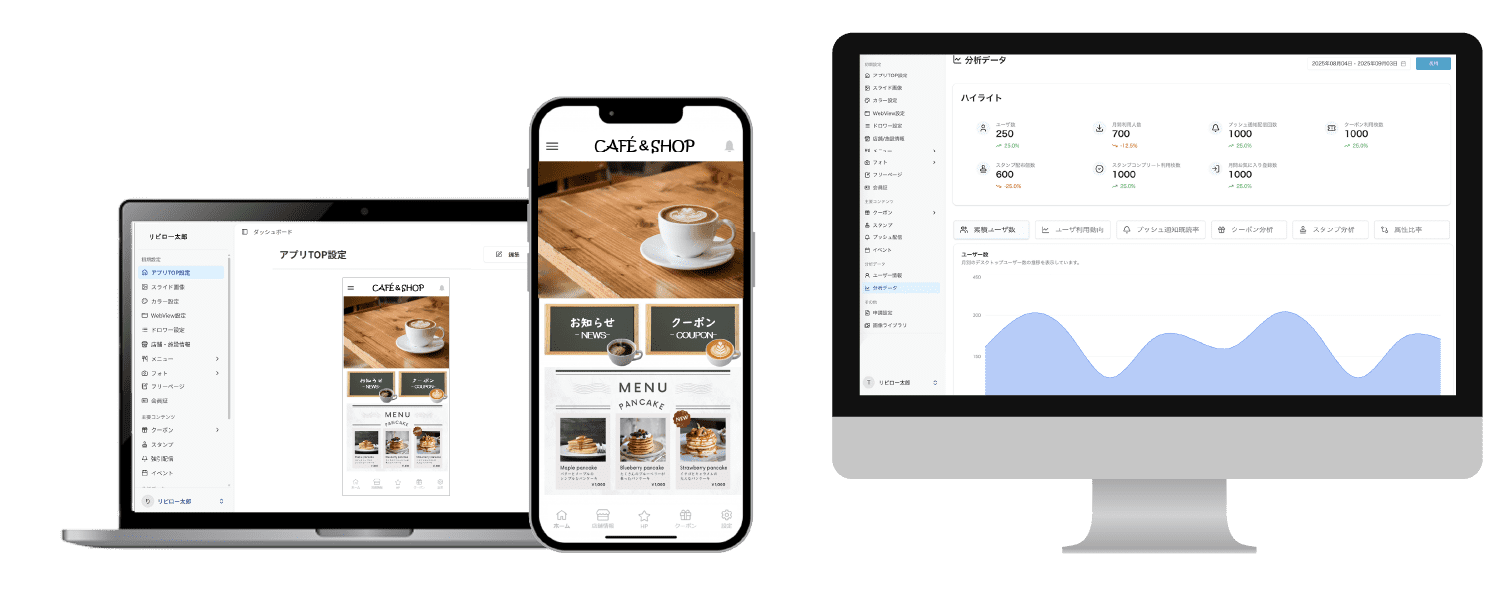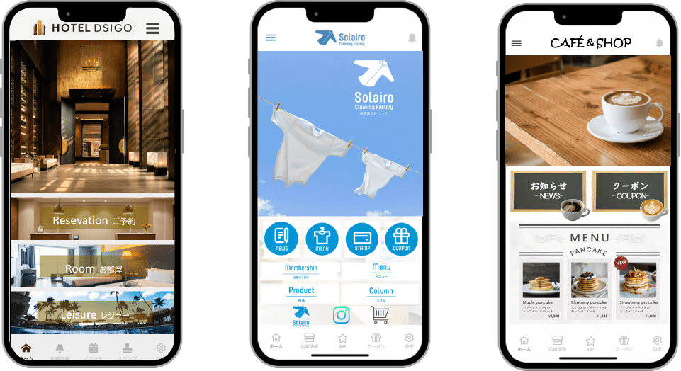 フルデザイン制作でアプリ開発できる安価なプラットフォームはリピローだけ!あなたのお店の雰囲気にあわせた専用のアプリをつくれます。