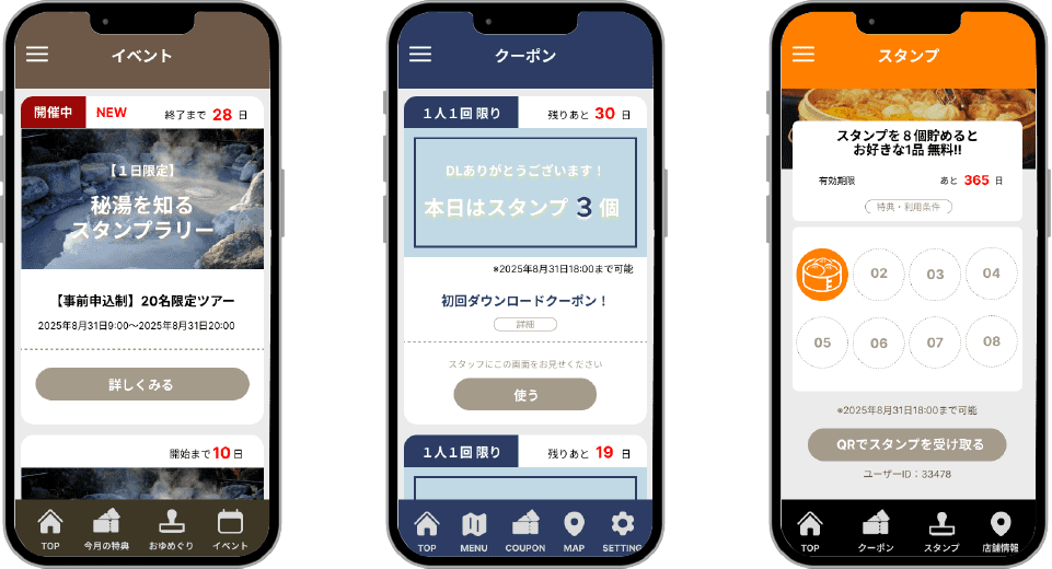毎月の集客に外部サイトに頼らざるを得ず、コストが年々増えていたところ、アプリの導入により、会員証もアプリへシフトし、スタンプやクーポン機能も活用しながら、個別にプッシュ通知を配信することで、顧客のリピート率が上がり、今では外部サイトに頼らない運営体制づくりに成功しています!